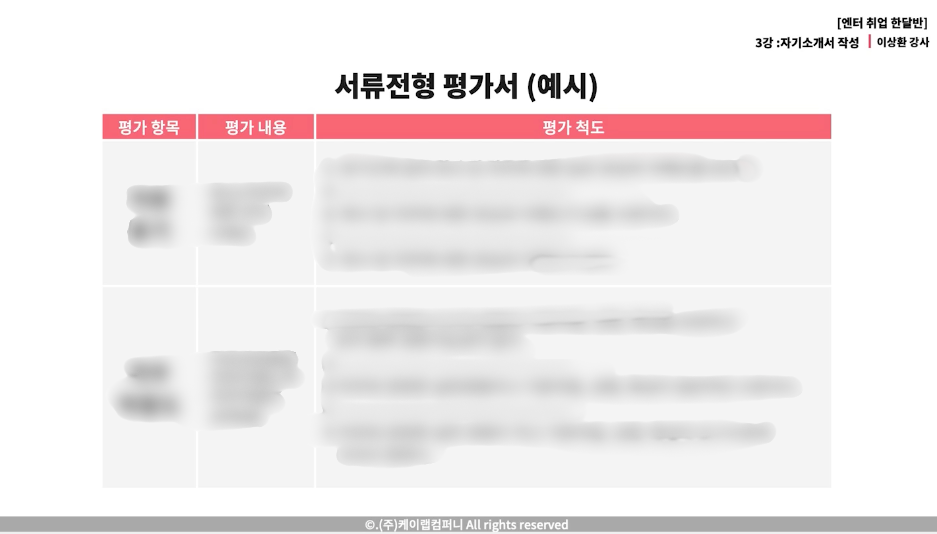 이렇게 서류전형 평가서 예시 자료도 함께 보면서